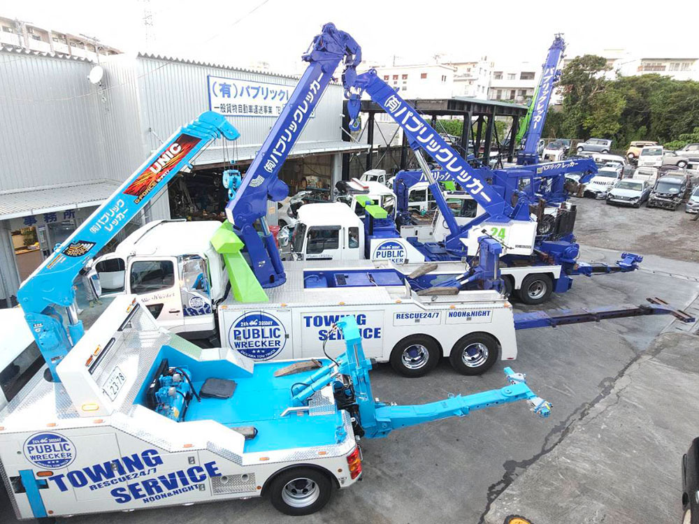 有限会社パブリックレッカーは、沖縄市でレッカーサービス、大型車カスタマイズ、自動車解体、部品・中古車の販売まで、お客様のさまざまなニーズにお応えするサービスを提供しております。